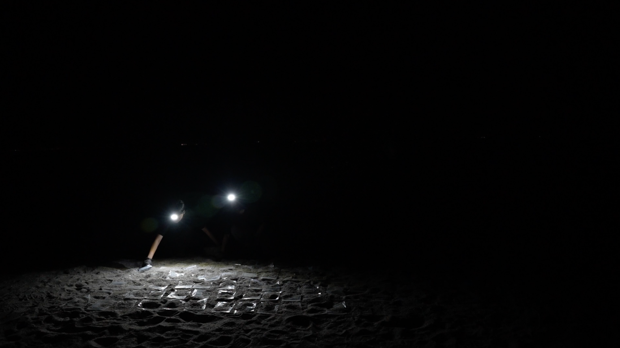 在salton sea湖畔一片大约20平方米的区域中,我们用淘金作为挖掘手段发现了300枚⻥的 鳃盖⻣。鳃盖⻣是⻥用呼吸的部位,外部环境与内部环境在此处交换。对于⻥类而言,这里是他们生死的阀⻔(threshold of the life and death)。最早,部分⻥类跟随水流从外部流 进salton sea并滞留在这里,另一部分⻥类来自于出于旅游业目的的投放。因为人类世的影 响,⻥类不得不经受违抗生物生存模式的迁移与离散。