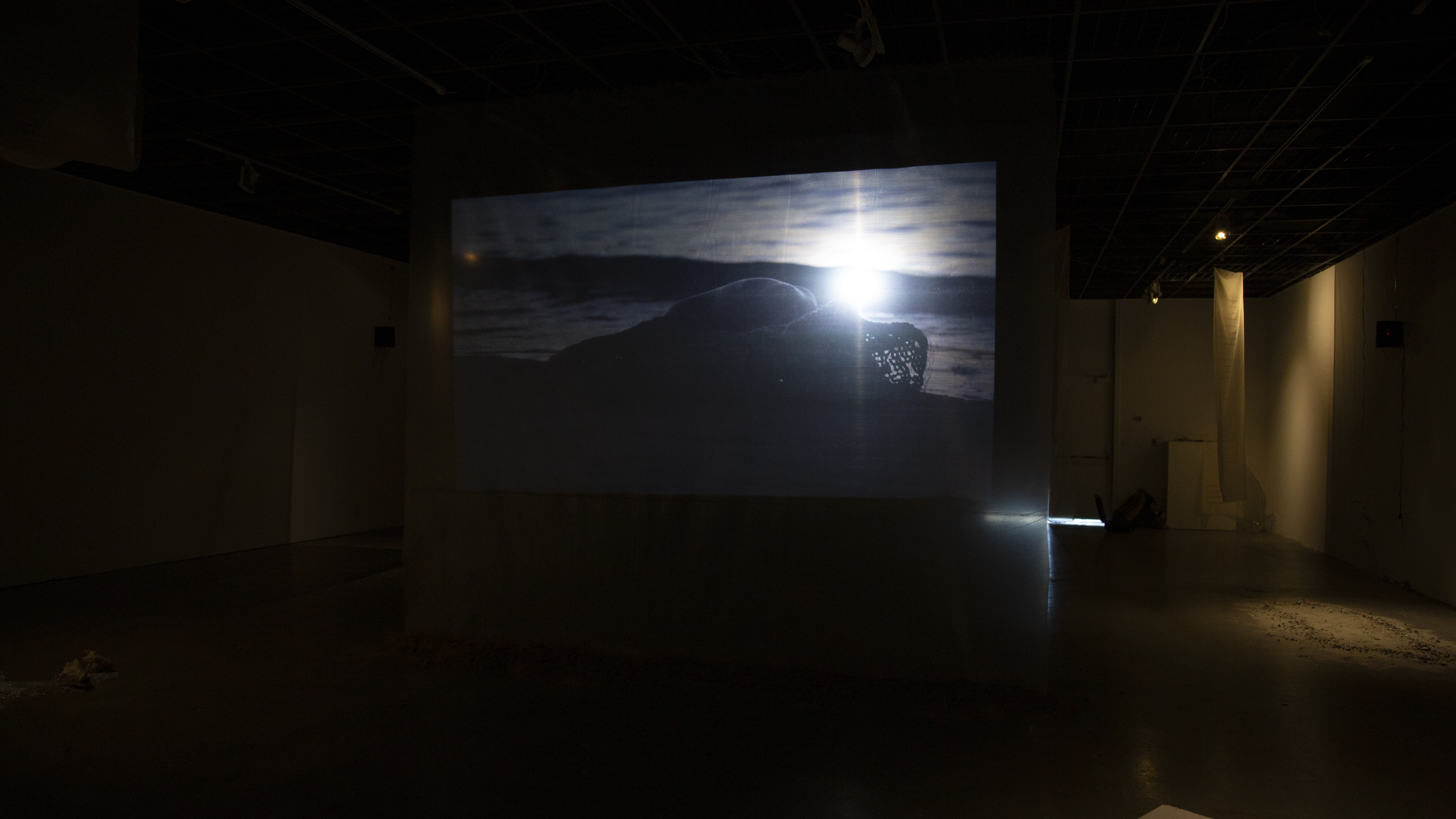 通过展示人与自然之间的亲密关系,我将家庭的概念隐喻到家园,以及私密性和公 共性之间的矛盾。这段视频通过我的身体无意识的颤抖、呼吸和对沙子的抓挠来表 现我对自然的不适应。当太阳下山,大海不断淹没我时,我的麻木状态试图迅速逃 离,但我的身体无法移动。直至视频结束,海滩上只剩下雕塑,大海的声音也被压 制住了。身体对自然的反应解释了个人在家庭关系中的脆弱性,以及私人个体在公 共领域的无足轻重。
